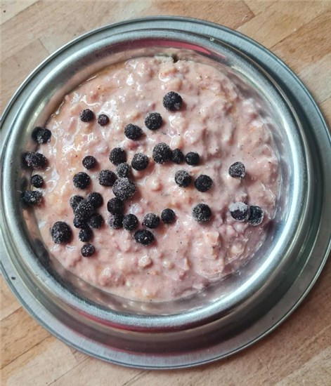 Toppat med lite bär/frukt- blåbär, lingon, hallon, rivet äpple, skvätt apelsin eller äpplejuice (osötad utan sötningsmedel)