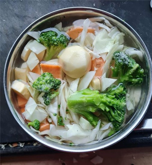 Dagens grönsaker. Kan vara det som blev över från vår middag eller något jag kokat och har färdigt.