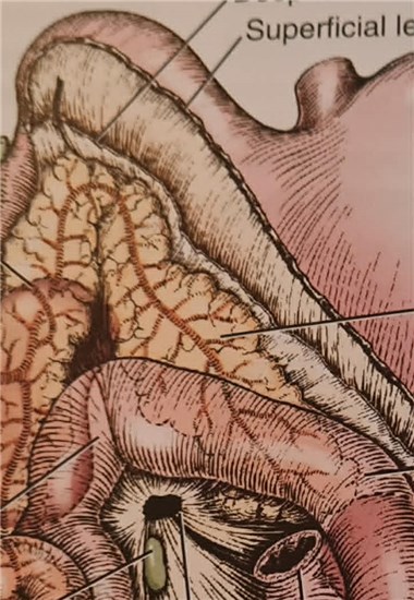 Strukturen på pancreas är som en hirskolv, små,små kulor som är sammanflätade till en korv.
